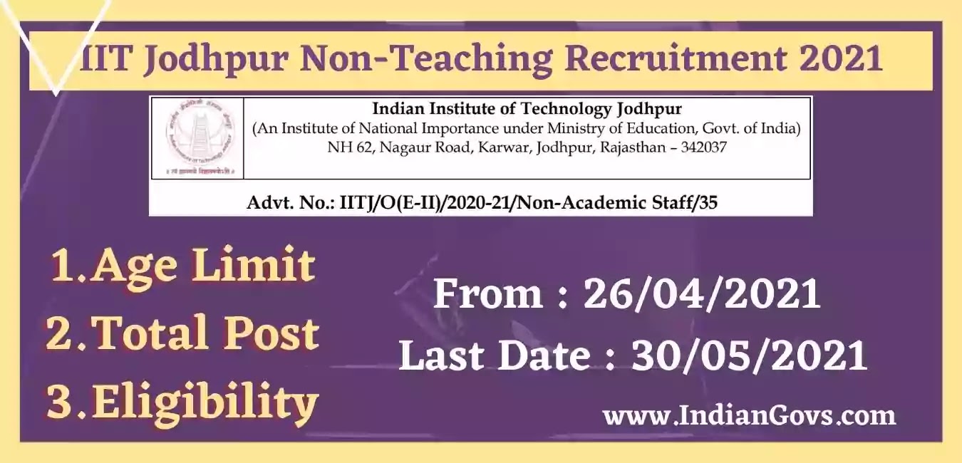 You will also get eligibility, total post and application fee details of IIT Jodhpur Non Teaching Recruitment 2021.